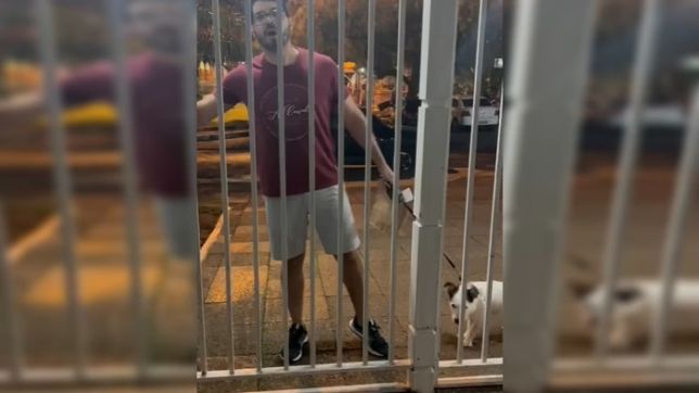 Em um dos vídeos, ele aparece segurando uma sacola e levando um cachorro na coleira. Ele grita com um porteiro: “Vem cá, bate aqui, rapaz! Bate aqui, se você é macho”. O trabalhador tenta argumentar com ele, dizendo não haver necessidade de tudo aquilo.