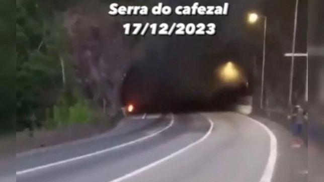 Uma testemunha gravou o local do acidente, que bloqueou a rodovia. Nas imagens, é possível ver uma enorme fumaça preta subindo em frente à entrada de um túnel.