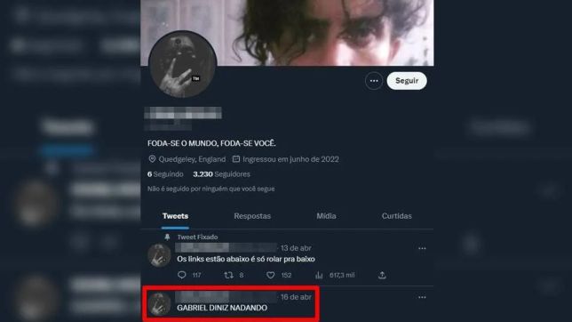 A coluna Na Mira identificou o perfil usado pelo criminoso – que teve a prisão preventiva pedida pela Polícia Civil do Distrito Federal (PCDF) – para disseminar as imagens vazadas de laudos periciais feitos em Institutos de Medicina Legal (IML). Cheias de ódio e ironia, as publicações de Fellipe Alves zombavam de cantores como Gabriel Diniz, morto em 2019, vítima de um acidente aéreo em Sergipe.