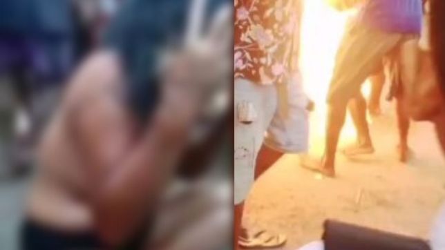 A mulher no vídeo também pode ser vista sendo desfilada por moradores na rua. Em seguida, os moradores jogaram gasolina na mulher para incendiá-la, acompanhados de gritos de outros moradores que aderiram à provocação.