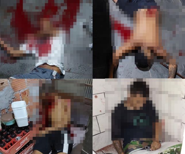 Ainda de acordo com a PM, os dois homens estavam com as mãos amarradas e amordaçados com fita adesiva. Todos estavam com marcas de tiros pelo corpo, principalmente, na cabeça.