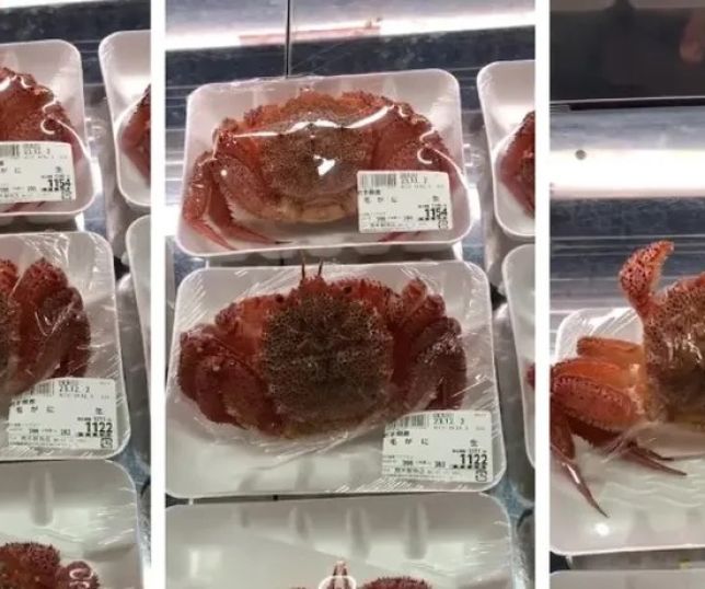 Caranguejos embalados vivos viralizam ao tentar escapar de bandejas à venda em peixaria no Japão