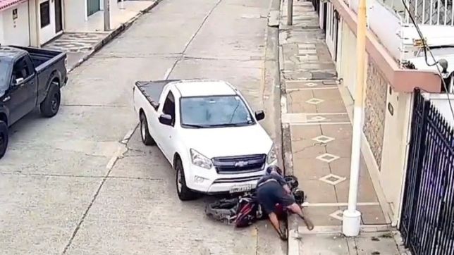 Un héroe sin capa atropello varias veces a un delincuente en moto que acababa de robarle a una señora!
