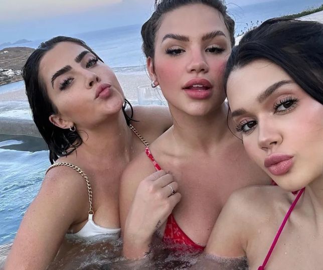 Jade Picon, Franciny Ehlke e Vivi Wanderley posam de biquíni em piscina na Grécia