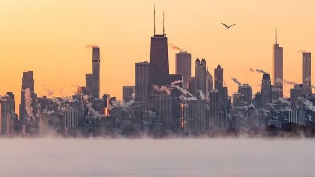 Residentes de Chicago filmaram uma cena que parece tirada do filme "O Dia Depois de Amanhã". Ventos gélidos soprando sobre as águas mais quentes do lago Michigan formaram uma neblina espessa, denominada "fumaça marinha". Comum em ambientes árticos, o fenômeno cobriu grande parte do lago.