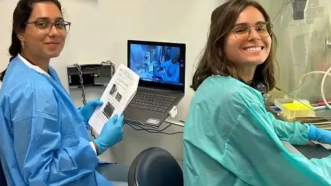 Luisa Coelho e Livia Luz trabalham no laboratório em San Diego