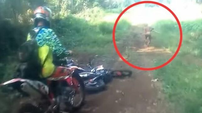 Um vídeo que circula nas redes sociais mostra uma cena assustadora, flagrada por motociclistas que percorriam uma trilha. O misterioso caso aconteceu durante o dia, quando um ser idêntico a um demônio surgiu no local e espantou os pilotos.