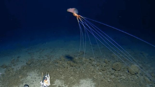 Por pura sorte, uma equipe de cientistas da Expedição Fossa de Tonga 2024, que está em andamento no oceano Pacífico, conseguiu filmar uma raríssima lula bigfin, conhecida pelos seus tentáculos ultralongos e pela sua aparência de alienígena. Para conseguir as imagens, a 3,3 mil metros de profundidade, os pesquisadores usaram um pedaço de peixe como isca, ao lado da câmera.