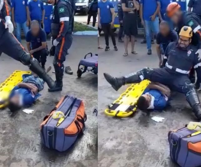 Socorrista do Samu cai sobre paciente durante atendimento e vídeo viraliza. VEJA AS IMAGENS