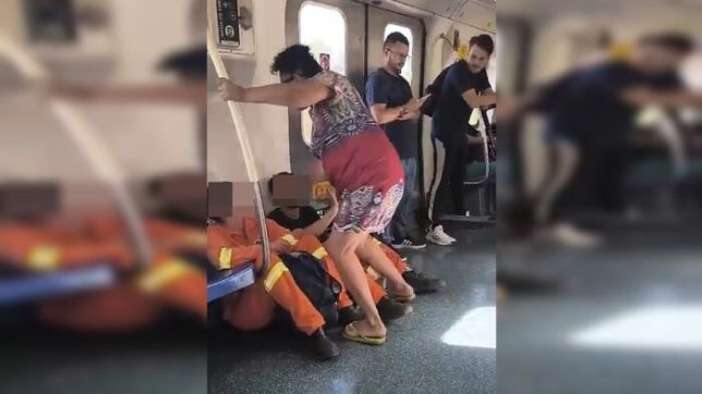 O bate-boca continua. Os garis se levantam, e a colega do jovem agredido fica entre os dois passageiros para evitar novos ataques da mulher.