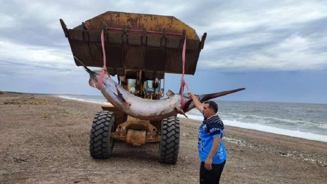 O corpo do enorme espadarte foi levado para o Instituto de Pesquisas Hidrobiológicas da Faculdade de Ciências Naturais e da Saúde da Universidade Nacional da Patagônia em San Juan Bosco.