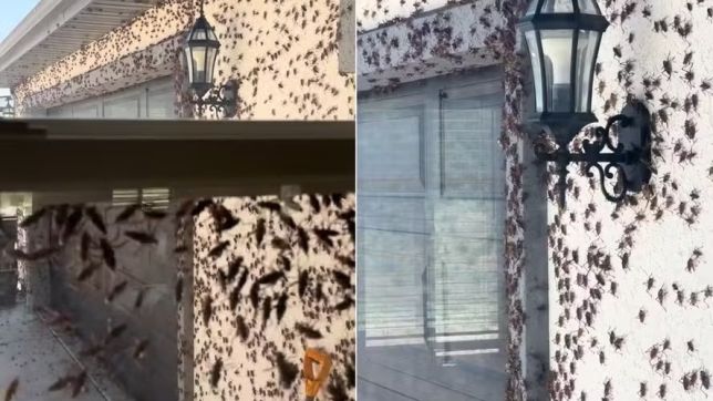 O dono de uma casa em área rural no estado de Nevada (EUA) viveu um "pesadelo bíblico". Como se fosse uma praga descrita no Velho Testamento, a residência de Craig Chamberlain foi coberta por dezenas de milhares de grilos canibais.O americano documentou o enxame da porta da sua garagem. Os insetos se espalharam pelo chão e pelas paredes da fachada.