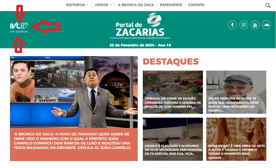 No Amazonas e na Região Norte, o ‘PORTAL DO ZACARIAS’ é líder absoluto de audiência, com 6 milhões 632 mil e 516 visuaizões de páginas, mais de 4 milhões à frente do segundo colocado, o ‘Portal do Holanda’. Os números são referentes ao período de 11 a 17 de fevereiro deste ano.