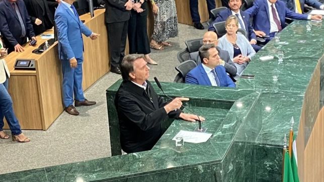 O ex-presidente Jair Bolsonaro (PL) recebeu o título de cidadão goiano, em Goiânia, na noite desta sexta-feira (18). Durante seu discurso, Bolsonaro lembrou que passou três meses nos Estados Unidos e afirmou que decidiu retornar ao Brasil “mesmo sabendo dos riscos que corre em solo brasileiro”.