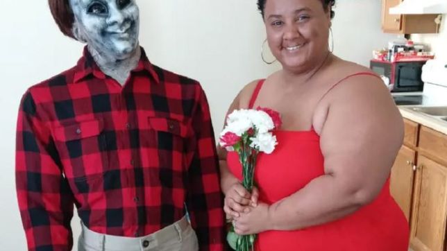 A americana que virou notícia em todo o mundo, em 2018, por se casar com uma boneca zumbi, voltou a chamar a atenção ao “trocar alianças” com um boneco de 1,80 m, também de aparência monstruosa.
