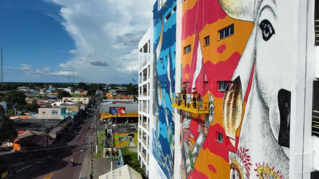 A área total que será contemplada compreende 1.091 metros quadrados, incluindo fachada principal e as rampas dos bois Caprichoso e Garantido. Está prevista a utilização de 550 litros de tintas na composição, que mistura diferentes técnicas.
