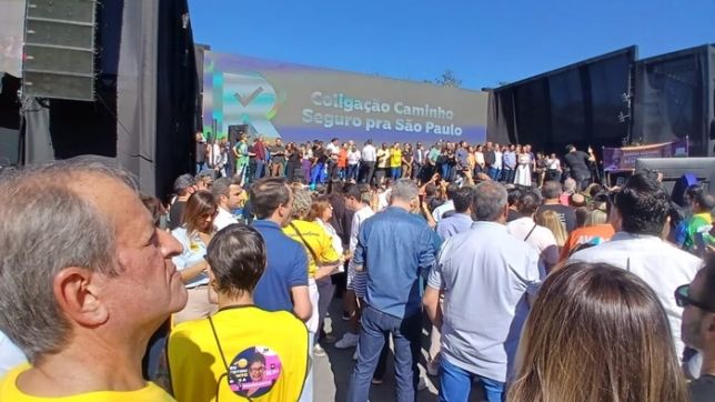 Presidente da Alesp, André do Prado, do PL, fez companhia para o cacique do partido por alguns minutos e saiu do local ao lado dele quando a convenção foi encerrada. Já sem Bolsonaro por ali, Valdemar voltou ao palco e confraternizou com Nunes e outros políticos.
