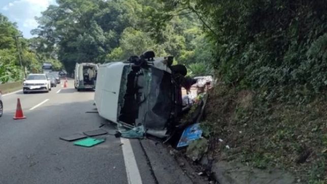 A van tinha placa de São Paulo e seguia sentido litoral. A Ecovias afirma que uma das faixas foi interditada.