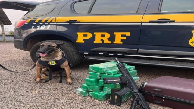 Uma adolescente de 17 anos foi apreendida com um fuzil calibre 5.56 e 20 quilos de maconha, que foram encontrados pela cadela de faro da Polícia Rodoviária Federal (PRF) em um ônibus. O caso aconteceu na manhã desta quinta-feira (12/9), em Chapecó (SC).
