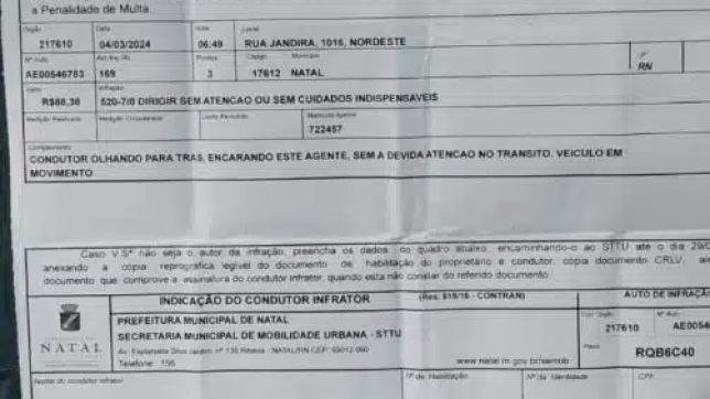 O Blog de Gustavo Negreiros e a 96 FM já foram alvo de várias multas curiosas, emitidas pela Secretaria Municipal de Mobilidade Urbana (STTU) em Natal. No entanto, a multa de hoje (21) se destaca: o motorista foi autuado por “encarar” o agente de trânsito.