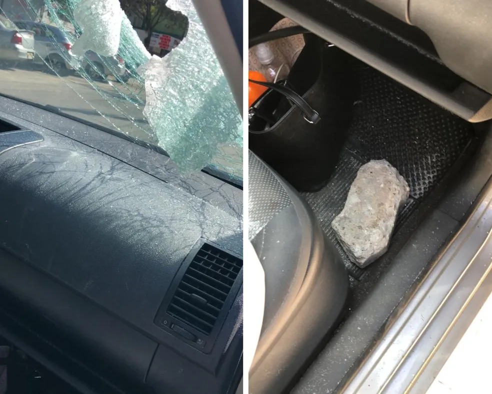 "Um indivíduo saiu do canto da rua e lançou um paralelepípedo na direção do carro, vindo a acertar o carro das vítimas na região do para-brisa, quebrando-o", informou a PM.