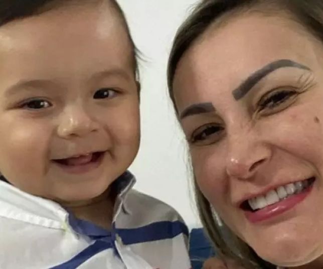 Modelo foi ao local acompanhada do filho mais velho, Arthur