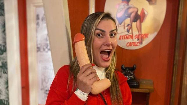 Nas imagens, Urach aparece sentada num banco em formato de pênis e, em seguida, fingindo atender um telefone com a mesma aparência. Ela também compartilhou em seu canal do YouTube detalhes do passeio.