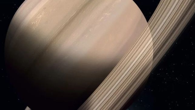 Os icônicos anéis principais de Saturno, que se estendem por uma distância de até 140.000 km da superfície do planeta, possuem uma espessura de apenas 1 km.