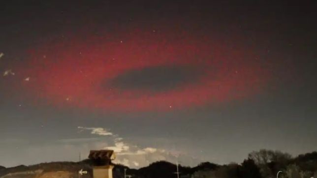 Uma cena impressionante ocorreu recentemente no céu noturno da Itália, quando um enorme halo circular de misteriosa luz vermelha fez uma aparição súbita.