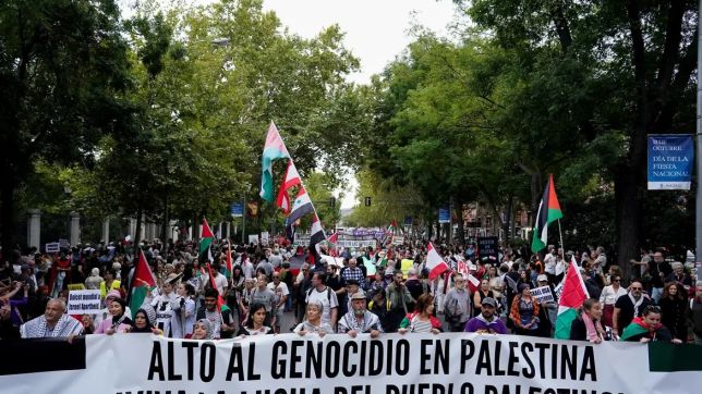 Milhares de manifestantes saíram às ruas em várias cidades importantes do mundo neste sábado (5) para exigir o fim do derramamento de sangue em Gaza, à medida que o conflito no enclave palestino se aproxima de seu primeiro aniversário e se espalha pela região.
