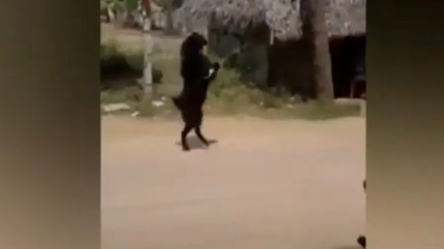 O animal, que teria sido treinado pelo povo local a andar 'de pé' para poder acompanhar os humanos, viralizou nas redes sociais.