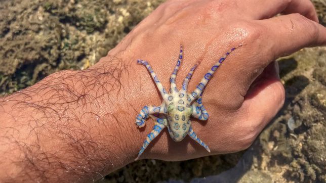 Um jovem australiano estava catando conchas numa praia de Perth, para levar para uma sobrinha, e acabou lutando pela vida em um hospital após ser mordido por um polvo-de-anéis-azuis (Hapalochlaena lunulata).
