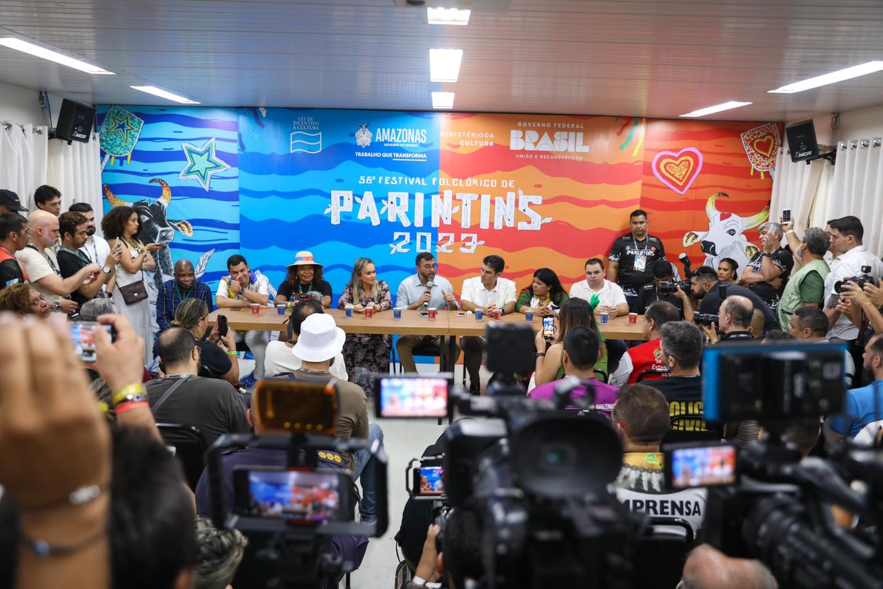 No intervalo das apresentações dos bumbás de Parintins, Wilson Lima conversou com a imprensa ao lado das ministras Daniela Cardoso (Turismo), Margareth Menezes (Cultura) e Sônia Guajajara (Povos Indígenas); além do governador do Pará, Helder Barbalho; do deputado federal Saullo Vianna; do deputado estadual e presidente da Assembleia Legislativa do Amazonas, Roberto Cidade; do secretário de Cultura e Economia Criativa, Marcos Apolo; e do diretor de relações governamentais da Coca-Cola, Vitor Bica.
