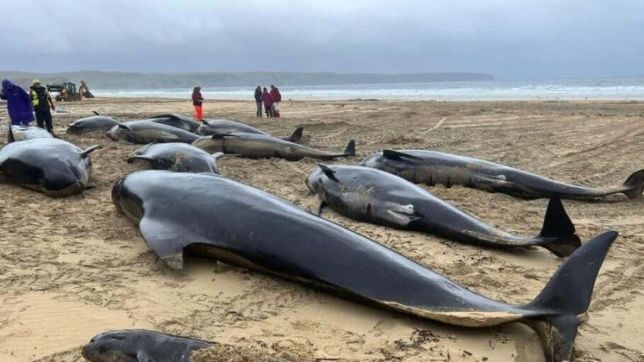 Segundo a organização BDMLR (British Divers Marine Life Rescue), os cetáceos são baleias-piloto e apenas dez animais permanecem vivos.