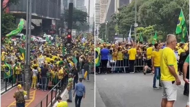 Imagens da área mostram a via lotada de pessoas vestidas com roupas nas cores verde-amarelas e com bandeiras do Brasil ou até de Israel.