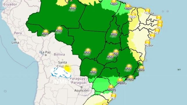 Partes do Norte e do Nordeste do país podem ter chuvas esporádicas provocadas pelo calor e umidade. A frente fria que está no centro do país, no entanto, não deverá ter força suficiente para diminuir o calor. De acordo com o InMet, as temperaturas continuarão quentes no começo da semana principalmente na região da Amazônia e no interior nordestino, e com tendência de estabilidade na maioria das cidades do litoral nordestino, com números pouco acima de 30°C nas máximas.
