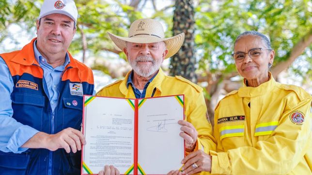 Porque o mundo dá muito palpite sobre o Brasil. Todo mundo se mete a cuidar do Brasil, quando na verdade nós é que sabemos cuidar do Brasil. Os nossos indígenas é que sabem cuidar desse país, os nossos quilombolas é que sabem cuidar do nosso país. E o nosso povo trabalhador”, afirmou.Com uniforme de brigadista do Prevfogo, do Ibama, Lula falou sobre o trabalho de combate às chamas no bioma, observado do helicóptero. “Comecei a conversar com a Marina, e tanto ela quanto eu ficamos com os olhos marejados. Muitas vezes, do nosso gabinete em Brasília, a gente não tem noção do que é um brigadista. E eu tive o prazer hoje de ver um brigadista em carne e osso, um cidadão igual a mim, com a missão nobre de apagar o fogo que a natureza trouxe ou que algum inimigo trouxe”, descreveu.