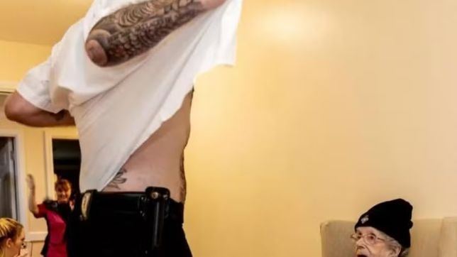 Depois de voltar da missa numa igreja próxima, na última sexta-feira (15/12), a centenária se deparou com um presente diferente: o show de um stripper.