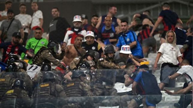 O Atlético-MG vencia o San Lorenzo por 1 x 0 quando uma confusão teve início na área da torcida visitante na Arena MRV nesta terça-feira (20/8). A Polícia Militar entrou em ação e precisou usar spray de pimenta e bombas de efeito moral para conter os ânimos. Por causa disso, a partida ficou paralisada por cerca de 5 minutos. A PM informou que um argentino foi detido.