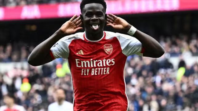 Saka comemora o gol marcado pelo Arsenal contra o Tottenham