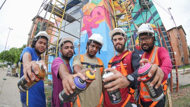 Além de autorizar a execução do grafite nas paredes dos blocos do conjunto habitacional, a UGPE, responsável pelo Prosamin+, deu apoio ao projeto, realizando curso de NR35, normativa que estabelece os requisitos de proteção para trabalhos realizados em altura. Além disso, ofereceu os Equipamentos de Proteção Individual (EPIs) e os andaimes, para os artistas realizarem as pinturas, com total segurança.