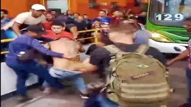 Um vídeo que foi gravado por um dos populares mostra o momento que o assaltante está sendo massacrado com muitos socos, chutes e tapas dentro do terminal que já estava lotado de pessoas.