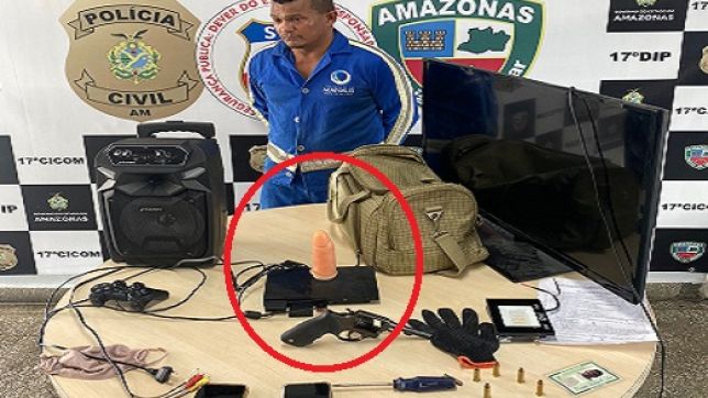 Um fato que chamou atenção do delegado e dos policiais civis do 17º Distrito Integrado de Polícia (DIP) que prenderam um assaltante na tarde desta sexta-feira, 3, foi o pênis de borracha que estava entre os seus pertences.