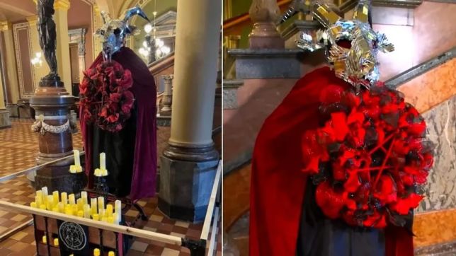Assembleia de Iowa exibe altar satânico como parte das