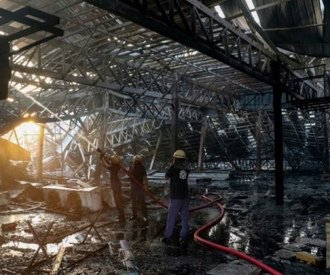 Segundo as autoridades, 10 mil m² estão em chamas, mas os bombeiros estão tentando controlar o fogo. Ainda com seu uniforme, Lyubov, uma trabalhadora da limpeza no hipermercado, relatou como fugiu do edifício.