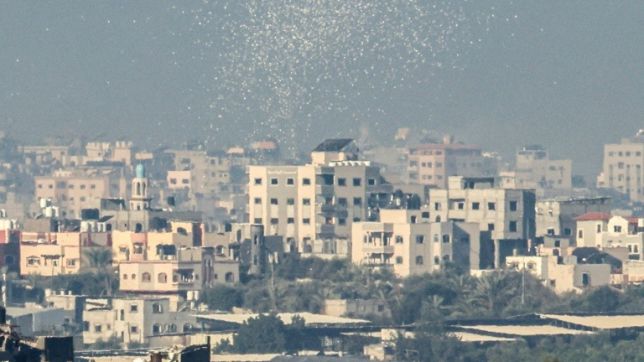 Panfletos lançados pelo Exército israelense sobre a Cidade de Gaza alertam as pessoas que devem seguir para o sul do território palestino