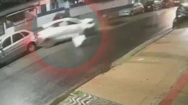 Nas imagens, o bandido é filmado por câmeras de monitoramento batendo o veículo branco em carros estacionados durante a fuga. Logo ele desce do automóvel e corre, momento em que um policial também aparece atrás dele.
