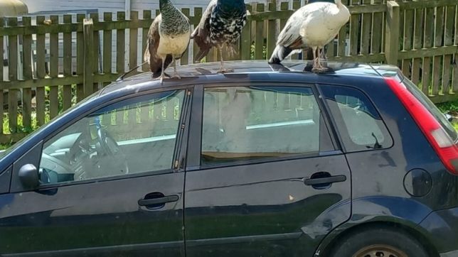 “Comprei há apenas seis meses e já está coberto de marcas e arranhões. Eles vêm e sentam nele e arranham com s garras. Os machos veem seus reflexos nele e pensam que é outro macho, então os bicam. Eles estão literalmente brigando consigo mesmos, mas o único dano é no carro. Outro dia, eu estava levando meu filho para a escola quando um dos pavões decolou de um telhado, mergulhou entre duas casas e bateu na lateral do carro. É apenas em momentos como esse que você percebe o quão grande eles são. Eles são um incômodo e precisam ir embora”, reclama o morador de Ellenborough.