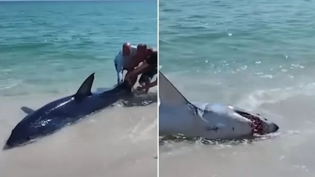 "Tomamos medidas para colocá-lo de volta na água, já que o pessoal da vida selvagem e os salva-vidas nos disseram que não havia nada que pudessem fazer!! Então fizemos o nosso melhor para tentar salvá-lo!!", postou ela em rede social.