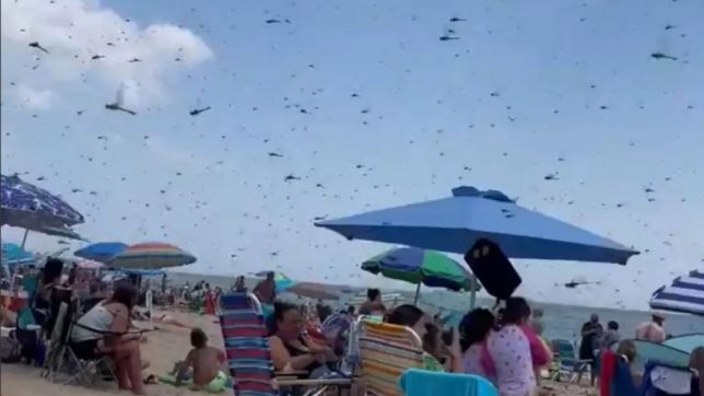 Vídeo gravado por uma das banhistas, Jennifer Serenson, mostra um enorme enxame de libélulas voando em direção à praia, como se fosse cena de um filme apocalíptico.